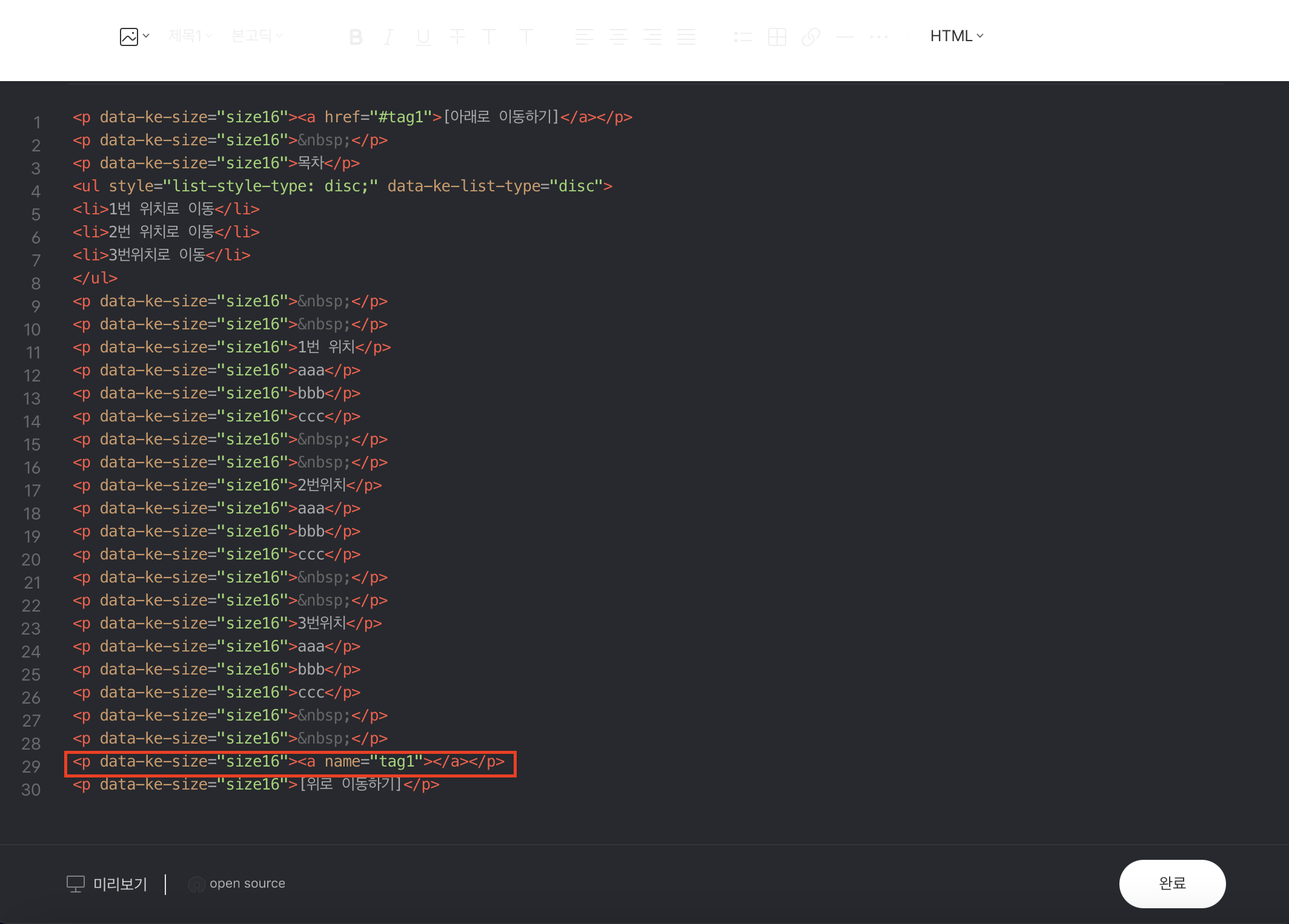 그래서 오늘은 html모드를 통해 특정 위치로 이동하는 방법을 쉽게 알려드리겠습니다.