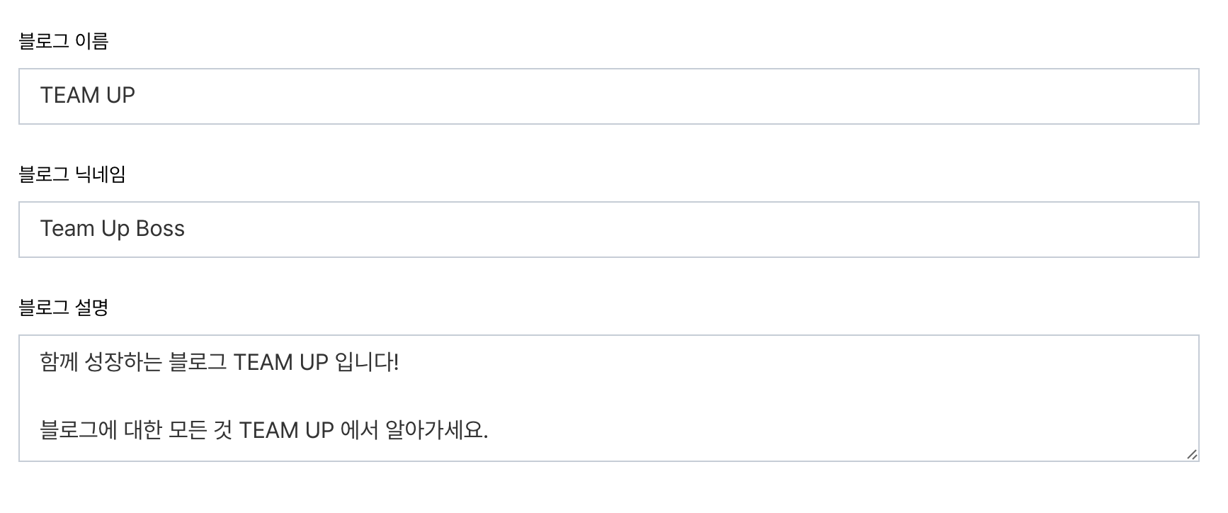 티스토리 관리자 페이지에서 가장 하단에 위치한 관리의 블로그를 클릭합니다. 블로그 설정에 들어가면 블로그 이름과 닉네임, 블로그 설명을 설정할 수 있습니다. 아마 초기에 블로그를 만들 때 이미 설정하신 분도 있을겁니다.